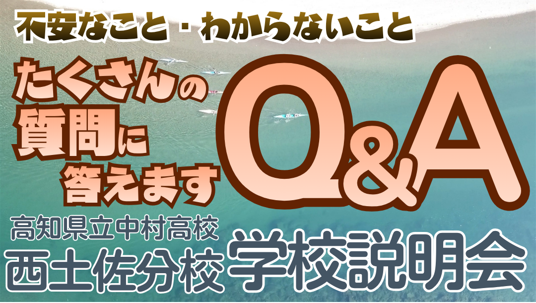 こんにちは。高知県立中村高等学校西土佐分校です。四万十川が流れる、美しい自然に囲まれた西土佐地域にある『四国一小さな』高校です!”少人数だからこそできること”西土佐分校にはそれらがたくさんあります。そんな魅力を3分でまとめましたので、ぜひ動画をご覧になってください。 ↓↓↓【3分でわかる!西土佐分校】https://www.youtube.com/watch?v=mNi47yl9yU8====================================================今回のテーマは「Q&A特集」地域みらい留学を考えている生徒や保護者のみなさん、新しい生活を始めるために、様々な疑問や不安な思いがあると思います。今回は、そんな不安や疑問を一気に解決します!今までの学校説明会や、オープンスクールで出た質問を集めました。また、せっかくの機会なので、どんどん質問してください。地域みらい留学への不安や疑問を吹き飛ばしましょう!====================================================気になるけど、時間が合わない……!そんな方は【学校SNS】をチェック!Instagram、西土佐分校HPで学校の様子を配信しています▼西土佐分校HPhttps://sites.google.com/g.kochinet.ed.jp/nishitosa-h▼公式インスタグラムhttps://www.instagram.com/nishitosabunkou_official/====================================================オープンスクールは随時、受付中です学校の施設や授業、寮、部活動の見学ができますお気軽にお問合せください▼申し込みはコチラ↓↓https://docs.google.com/forms/d/e/1FAIpQLScE_Rb4t644zTdcjL8l7_fujQWlZ3mU9uB5VZWLE24YNqpHbA/viewform====================================================【問い合わせ先】TEL:0880-52-1186MAIL:320136@ken.pref.kochi.lg.jp担当:川村====================================================