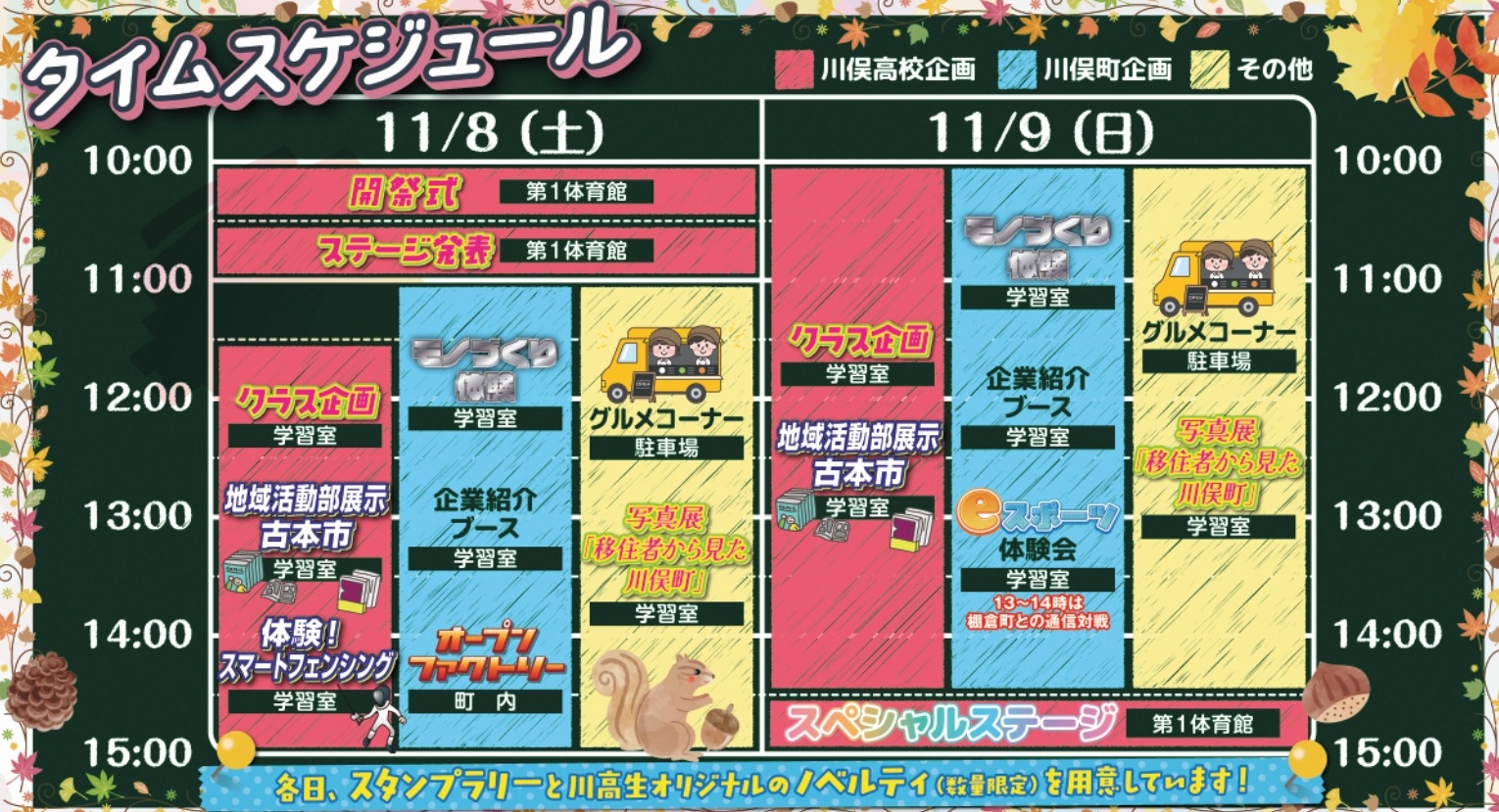 11月8日(土)、9日(日)に行われる公開文化祭「かえで祭」のスケジュールを掲載しました。 先輩方の様子が見られるクラス企画に加え、川俣町にある企業の情報までわかっちゃう企業紹介ブースなど盛りだくさんです。 ぜひおいでください。