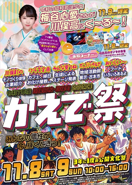 11月8日(土)、9日(日)に3年に一度の公開文化祭を開催します!テーマ「みんなの個性が、今、輝くときっ!」のとおり、学校や生徒はもちろん、川俣町のキラリと光る個性が溢れる文化祭です。キッチンカーも学校にやってきます!なんとeスポーツ体験もできますよ!他とはちがう魅力を満載して皆様をお迎えします。お待ちしています。